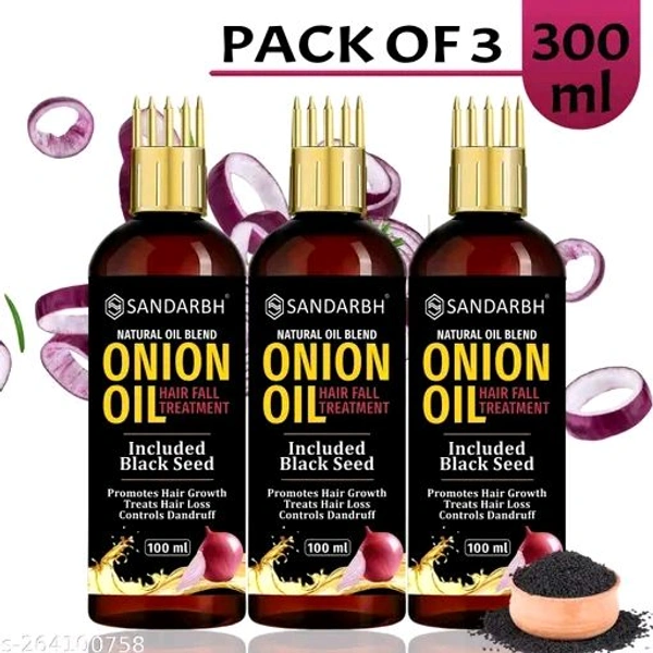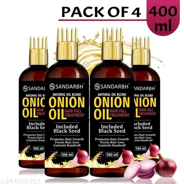 Onion Oil - Black Seed Onion Hair Oil - WITH COMB APPLICATOR - Controls Hair Fall - NO Mineral Oil, Silicones, Synthetic Fragrance Hair Oil (100 ml)-PACK-4