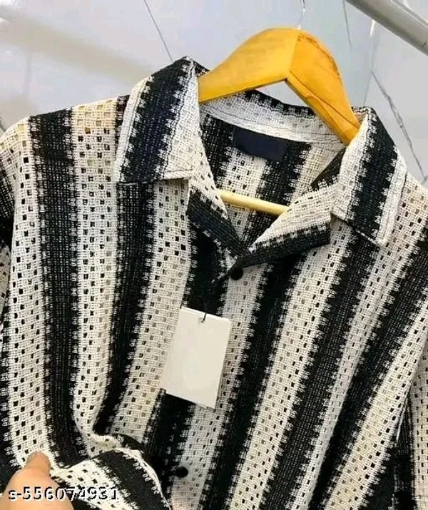 Name: Trendy Modern Mens Pure Crochet Cotton Black Shirts